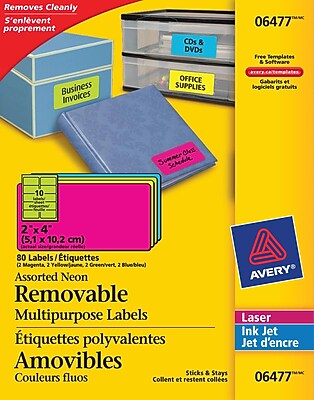 [$7.78 save 40%] Avery® Assorted Neon Laser/Inkjet Removable Multipurpose Labels, 2in. x 4in., 80/Pack, (06477). Canada hottest deals in last 24 hours please click here.